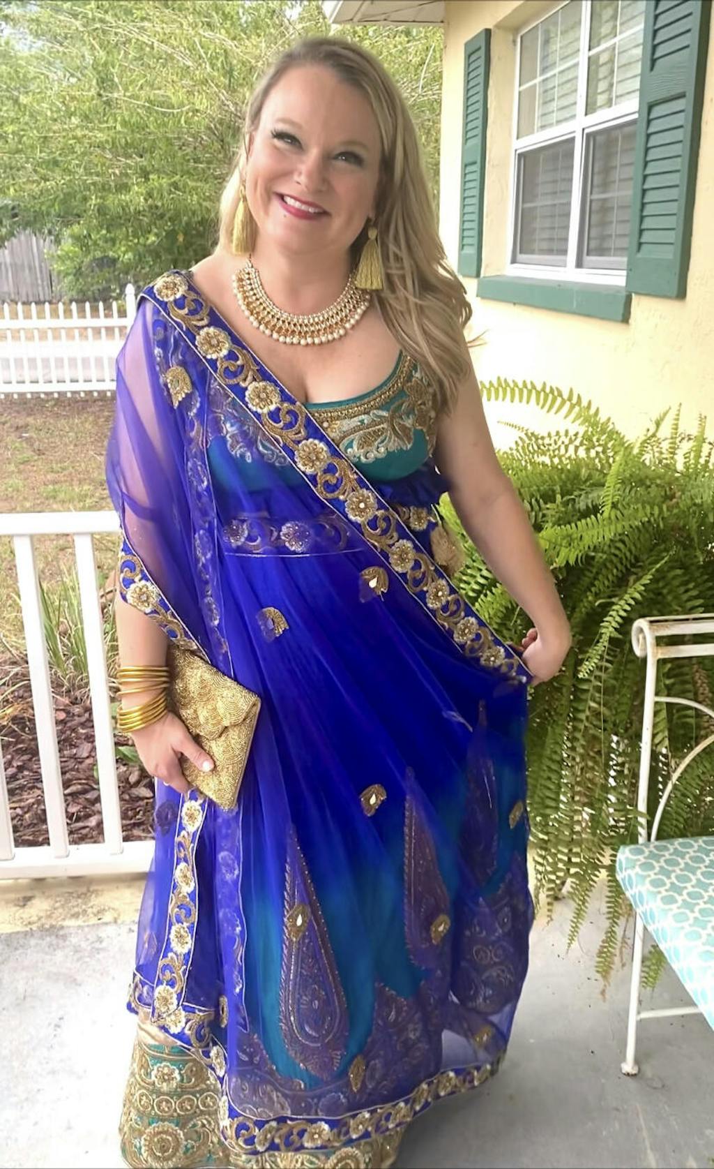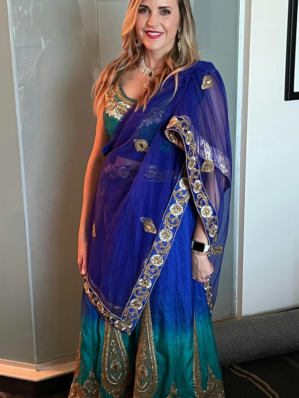 I attended my first Indian wedding, and had been fretting over what to wear when I came across this fantastic website. I rented this peacock lehenga, and it was beautiful! I got so many lovely compliments, and felt great in it. It was such an honor to get to wear something so beautiful and authentic to celebrate an amazing event and culture! I did have to watch some YouTube videos to pin the dupatta, which I ended up pinning a bit better after taking the attached picture. The shipping/return process was a breeze - highly recommend!